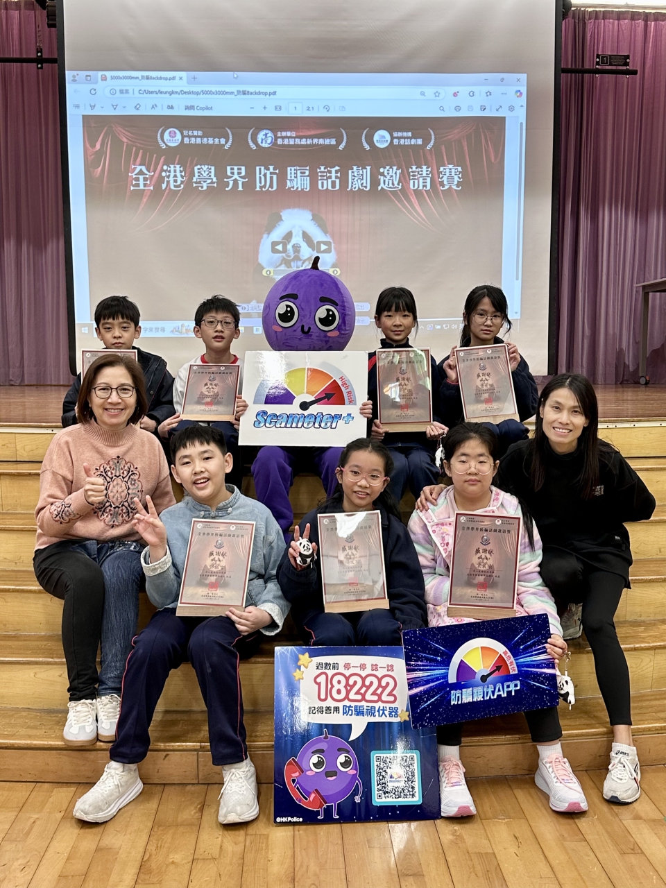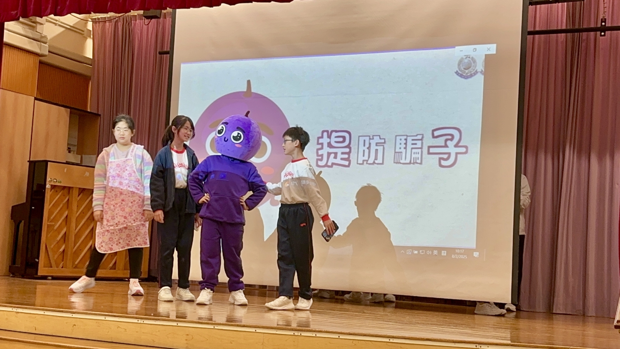 為了提升學生的防騙意識,本校參與了由香港話劇團、善德基金會與新界南警區攜手舉辦的「全港學界防騙話劇邀請賽」。透過比賽加強學生對騙案的了解,同時能提升舞台演出的技巧。演出當天有超過100名家長及同學回校觀賞話劇,參賽同學全力以赴,氣氛熱烈。話劇表演後的問答環節,更能增加大家對國家安全中網絡安全、人工智能安全的認識以及防騙資訊的了解。