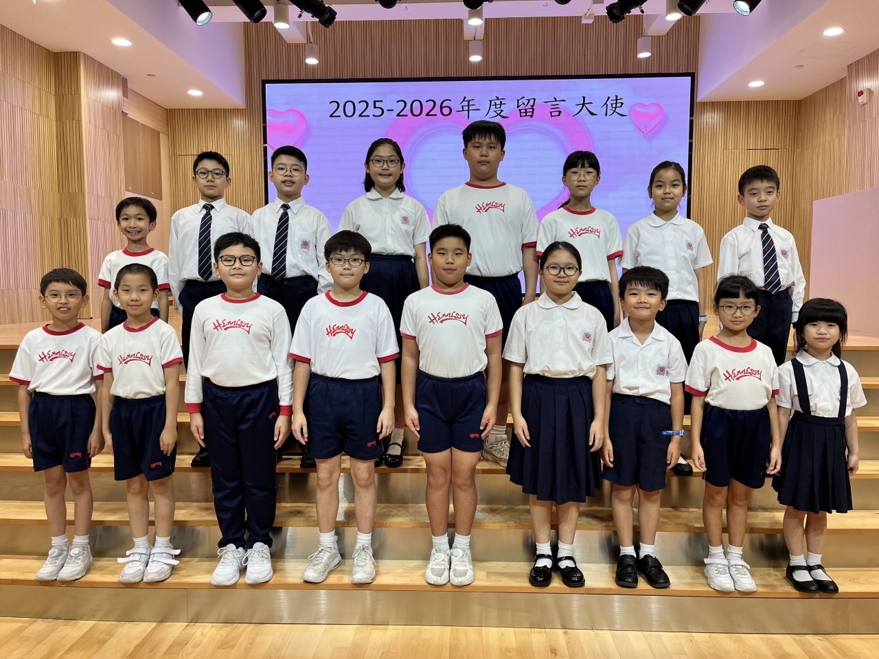本校於學期初透過「留言大使」招募計劃,鼓勵同學分享個人關於仁愛或同理心的故事。被學校選任為「留言大使」的同學負責於午膳時宣讀老師給同學「仁愛‧同理心」的勉勵留言,讓同學潛移默化,成為一位仁愛及富同理心的人。