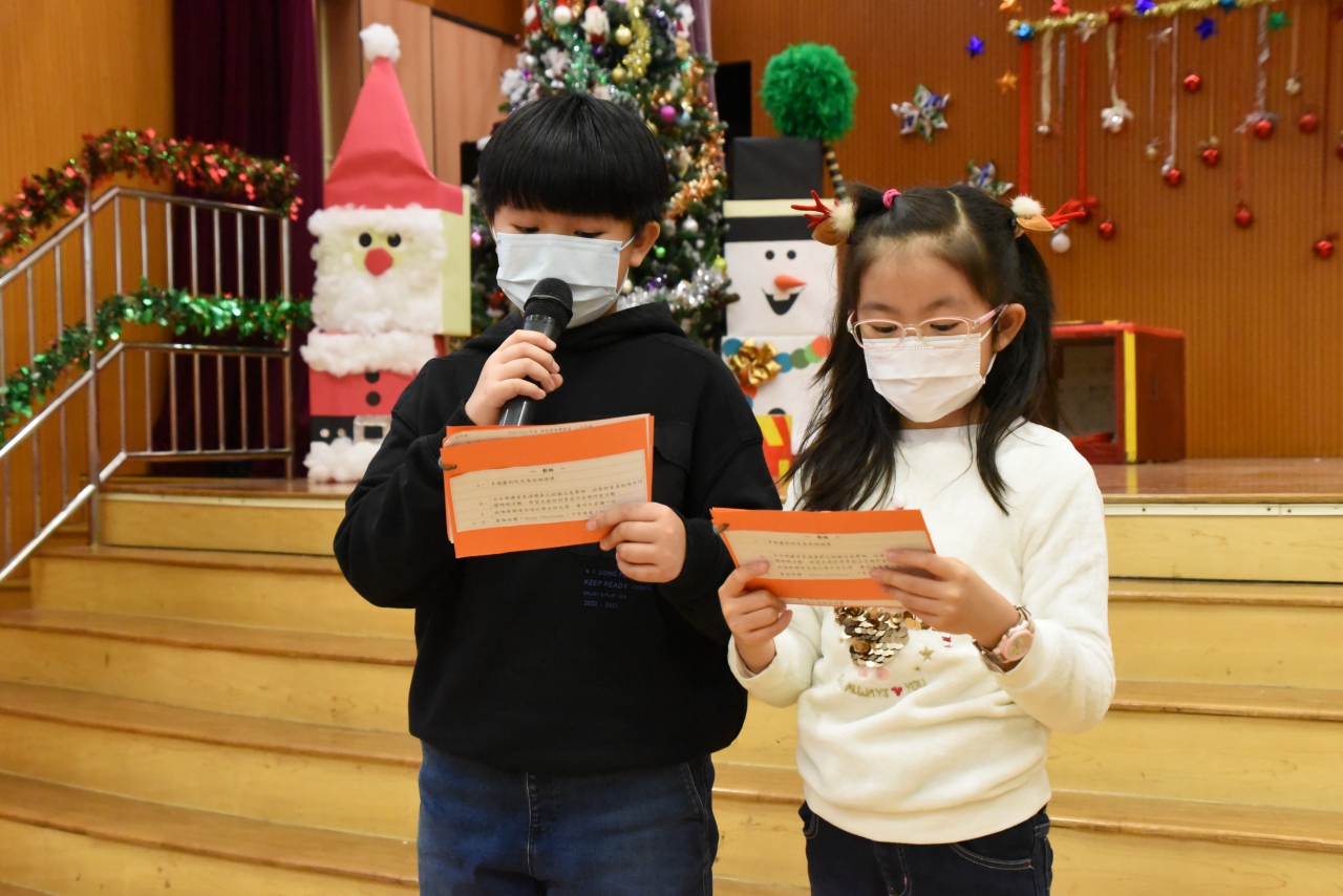 學校在12月20日舉辦了綠色聖誕聯歡會。校園放滿了聖誕佈置,老師及同學都穿上富聖誕特色的服飾,課室亦播放聖誕歌,整個校園充滿濃厚的節日氣氛。當天的節目非常豐富,有合唱團表演、小丑雜耍、大抽獎、攤位游戲、課室聯歡等,讓大家歡度聖誕。