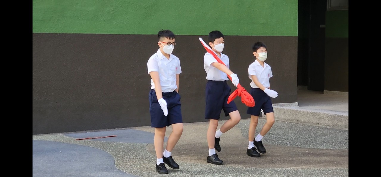 • 同學們精神抖擻,準備參與升國旗儀式比賽。