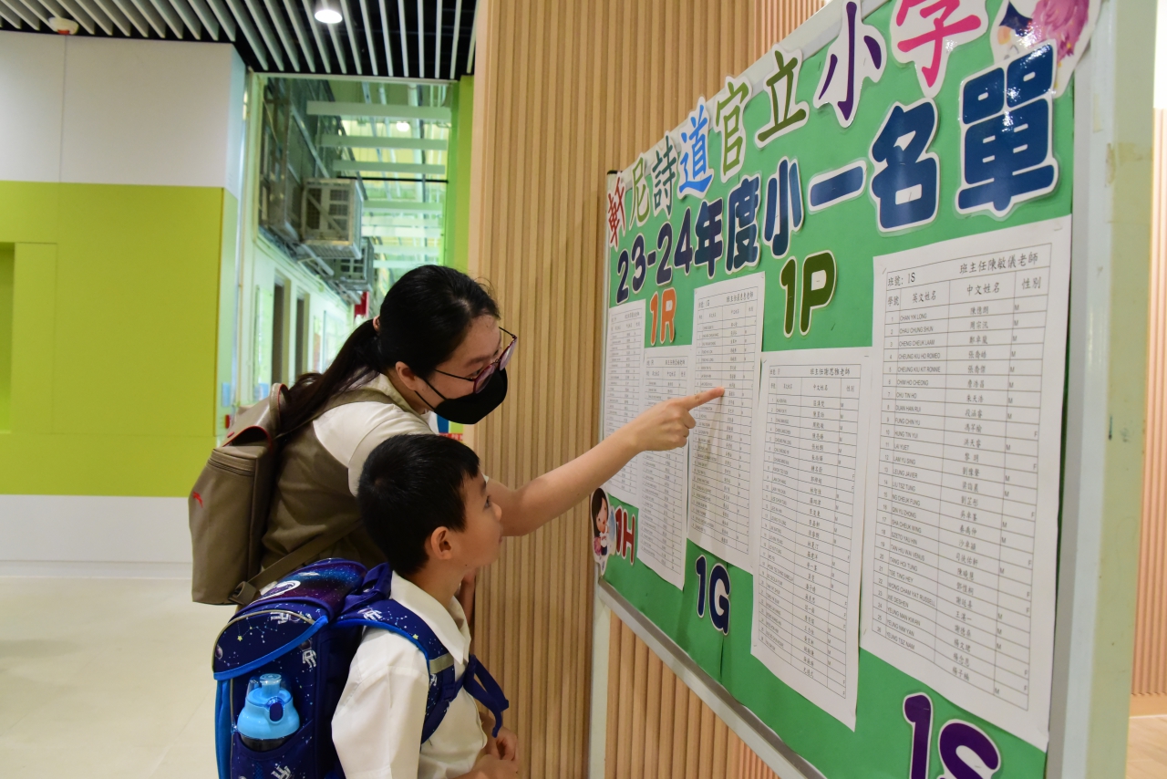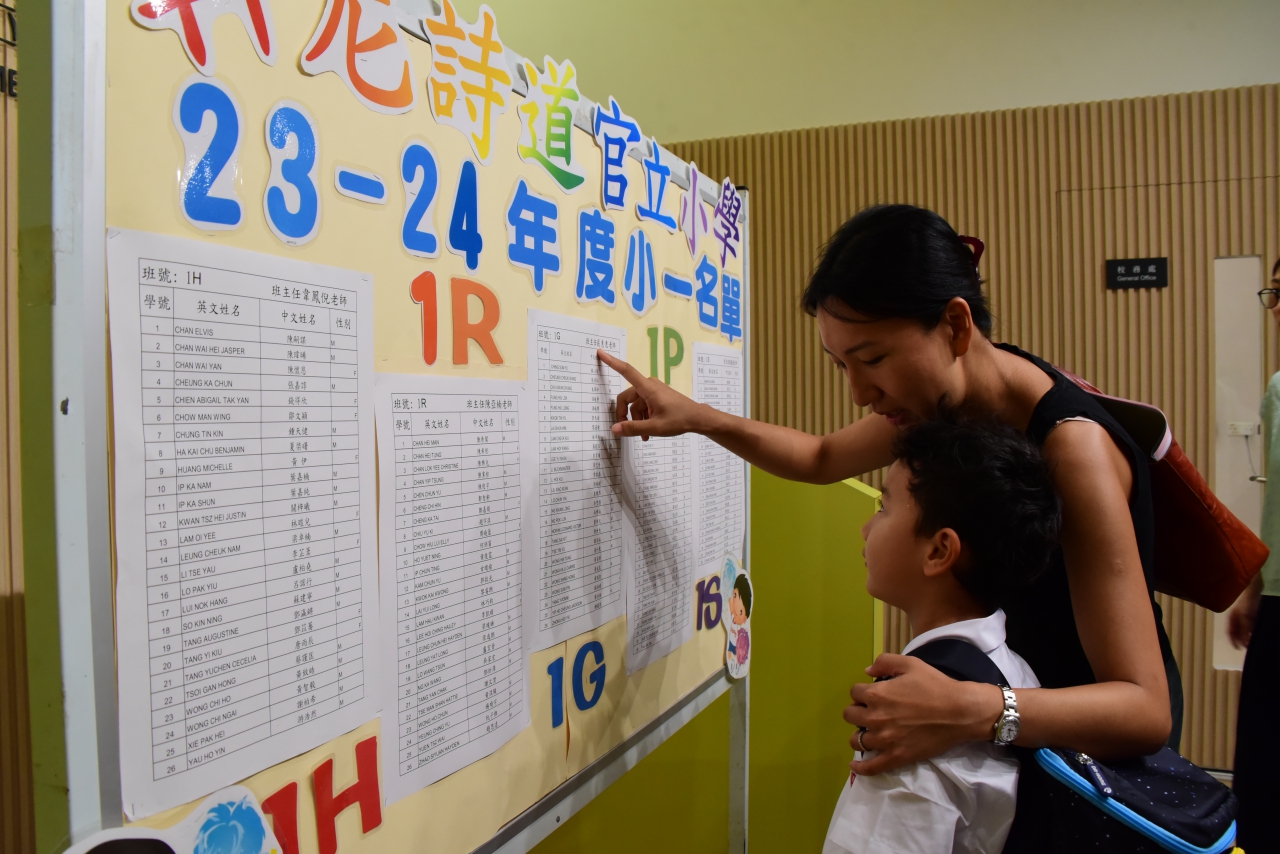 本校於8月29日舉行了「小一迎新日」,為小一新生適應作好準備。當天,校方先安排家長在禮堂參加座談會,校長及各位主任講解學校資訊,讓家長了解本校的課程特色及新生入學注意事項等。座談會後,家長到課室與班主任及科任面談,讓家長了解各科的功課類別及學習重點。而小一新生會在課室學習一些上課時的簡單禮儀,體驗小學生活。最後,在家校合作下,「小一迎新日」得以順利進行。