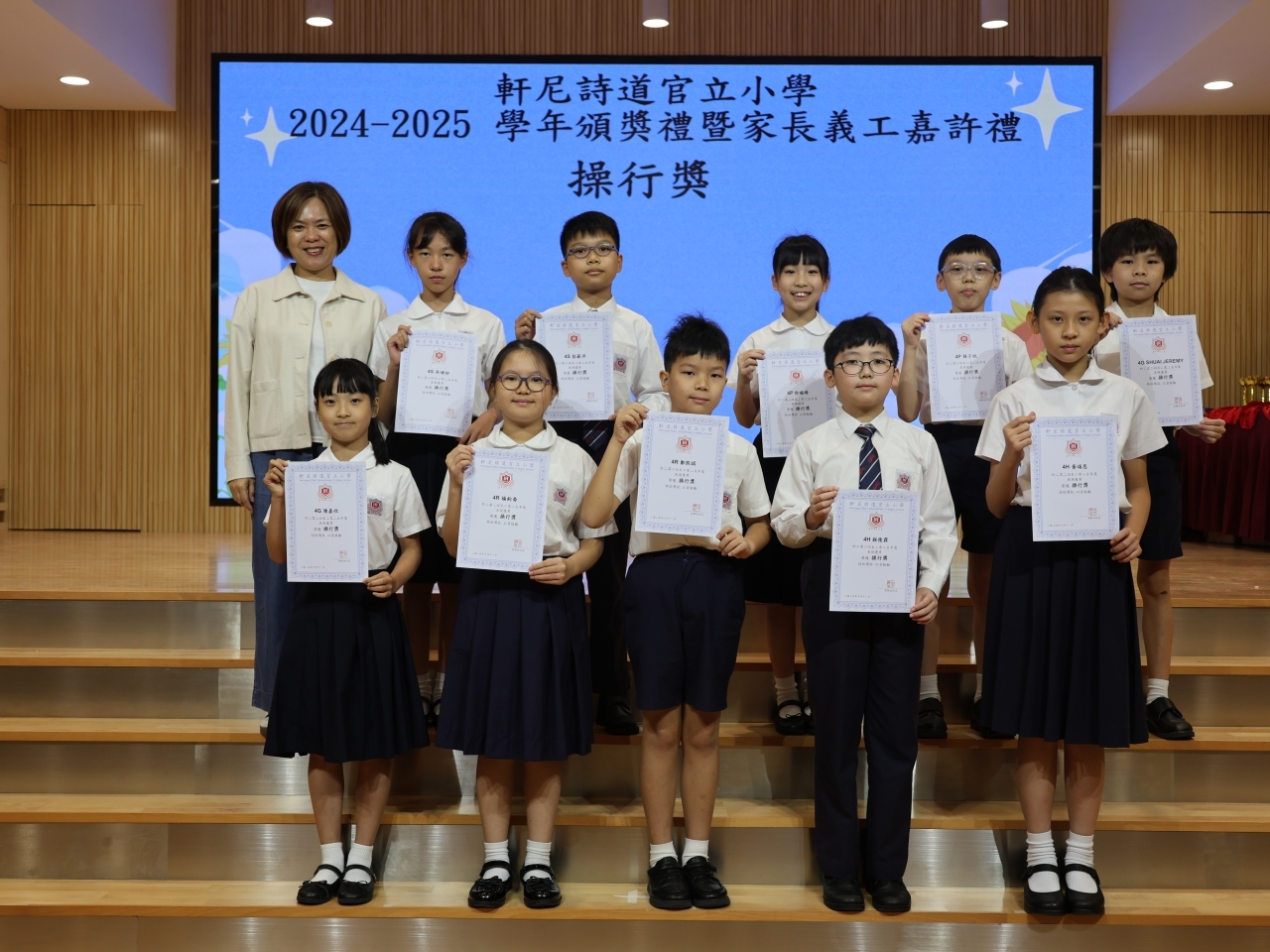為嘉許同學於2024-2025學年之努力及優秀表現,2024-2025學年頒獎禮暨家長義工嘉許禮已於十一月七日 (星期五) 順利舉行,當天頒發獎項包括:全級學業獎、全班學業獎、進步獎、操行獎、服務獎、傑出學生、校外獎學金及舊生會獎學金等。此外,亦舉行家長義工嘉許禮,十分感謝家長們在過去一年為學校服務。典禮後更安排粵劇表演,同學們表現精彩,氣氛熱烈。