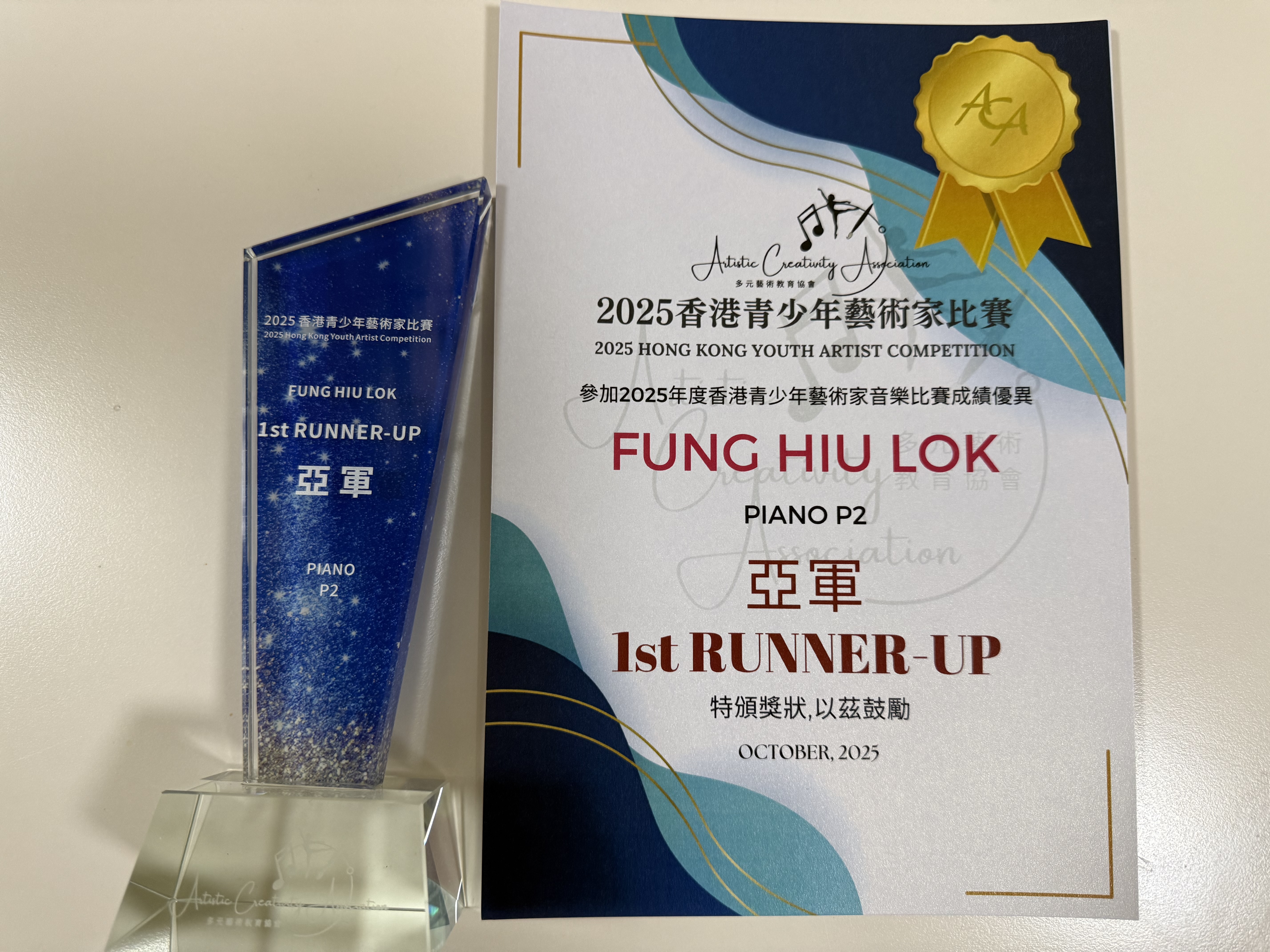 Piano P2 亞軍舉辦日期:05/11/2025主辦機構:多元藝術教育協會 -