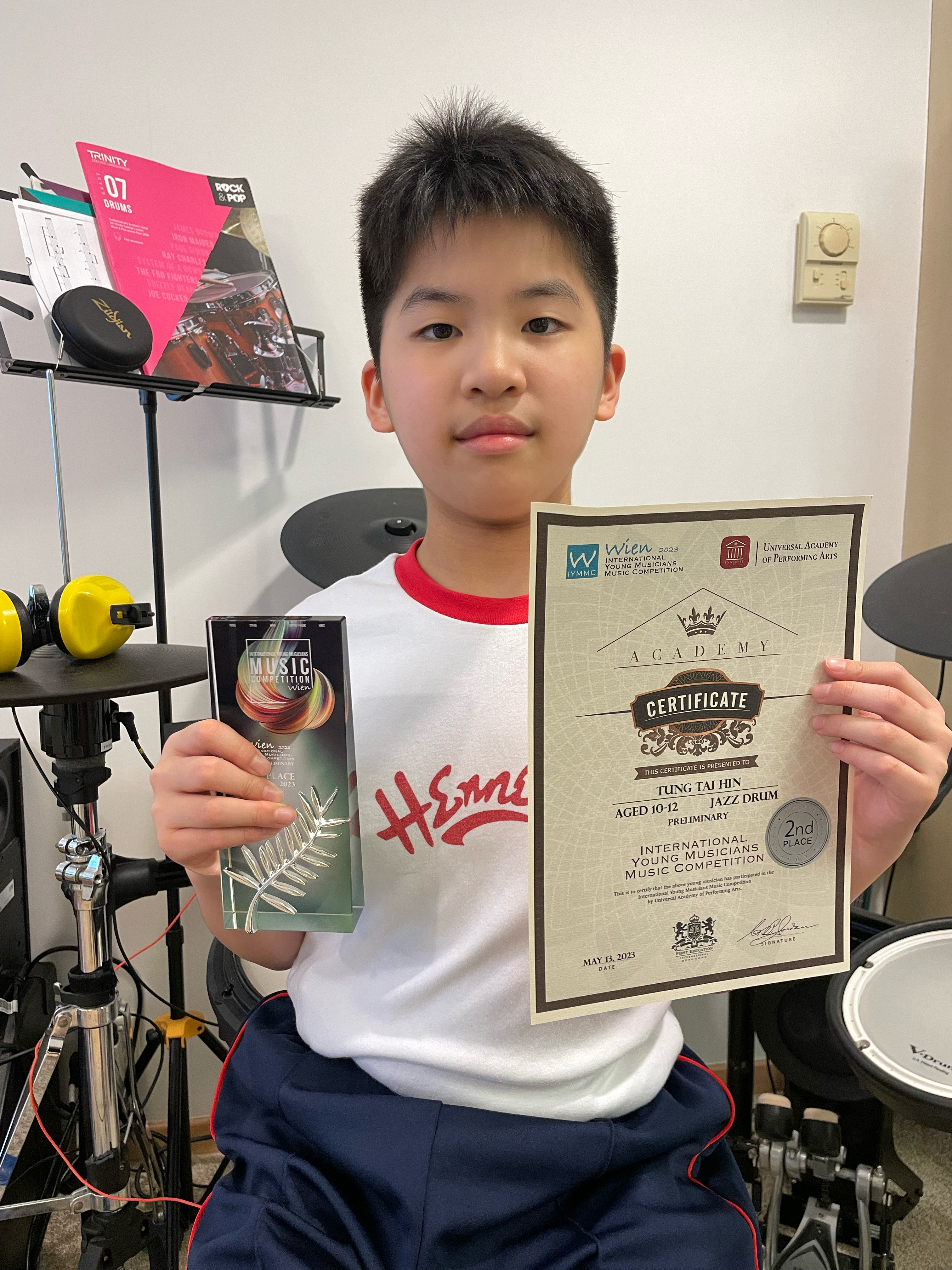 Jazz Drum(Aged 10-11) second place舉辦日期:13/05/2023主辦機構:Universal Academy of Performing Arts -